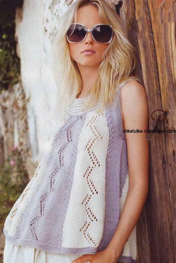 вязание спицами, топ, схема, описание, женский, двухцветный, расклешенный, летний