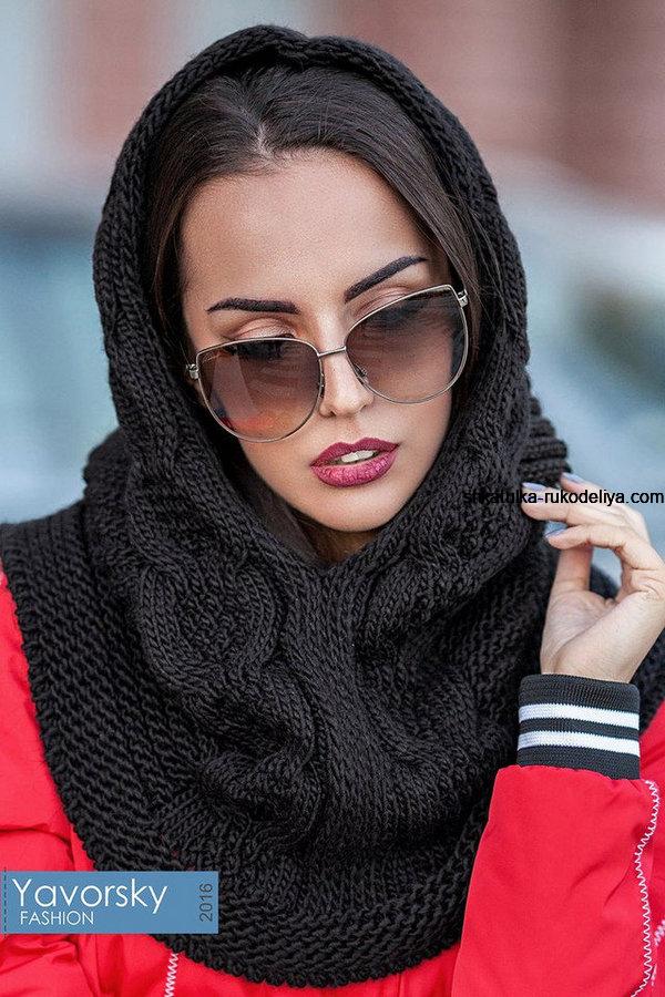 Сьемный капюшон спицами. Как связать теплый снуд-капюшон спицами