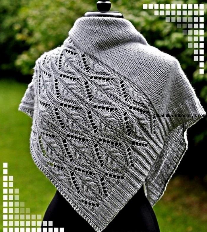 Шаль спицами с ажурным краем. Схемы вязания шалей спицами