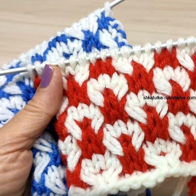 вязание спицами, узор, жаккард, ленивый, двухцветный, видео, простой, для начинающих
