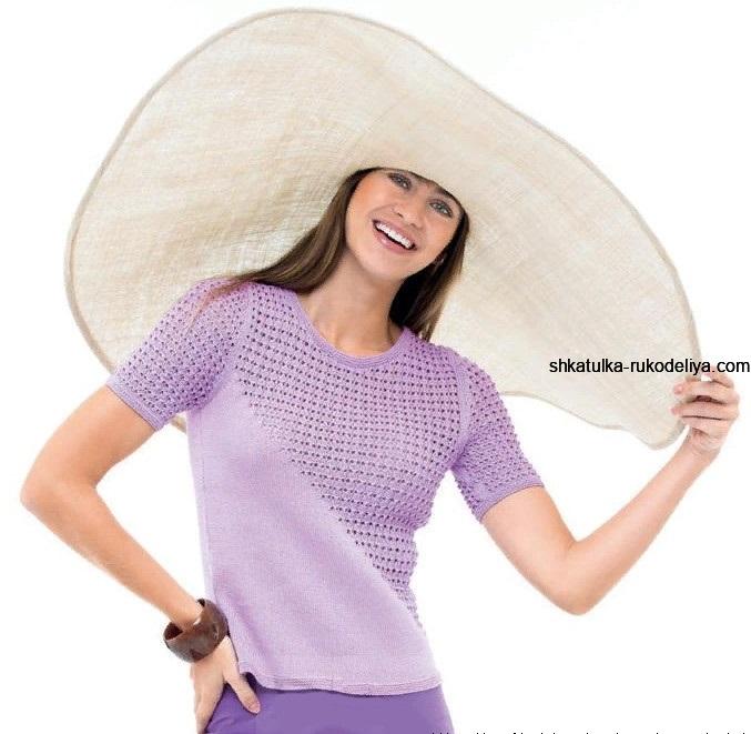 вязание спицами, кофточка, схема, женская, сиреневая, лето, ажурная