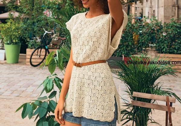 вязание спицами, туника, схема, описание, боковой разрез, летняя, свободная, женская
