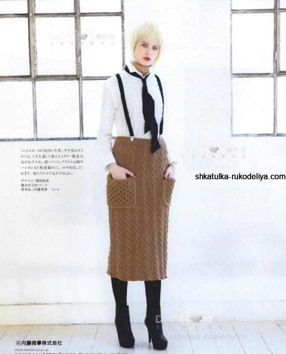 Длинная юбка с карманами спицами. Теплая юбка спицами узором из кос