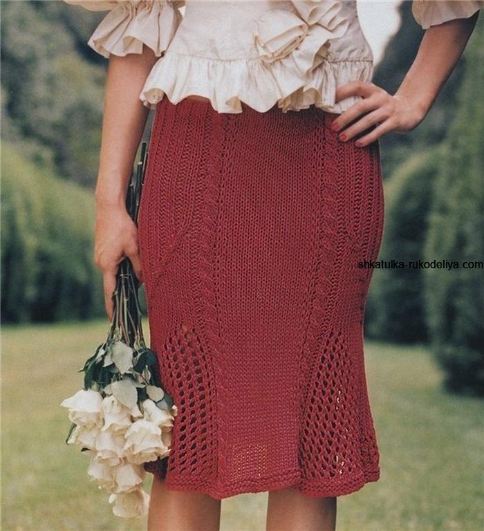 Юбка спицами с ажурными вставками. Юбка спицами с вертикальными аранами