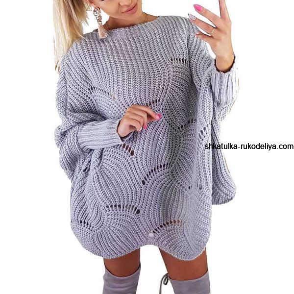 Платье-свитер свободного кроя спицами. Платье оверсайз спицами с описанием