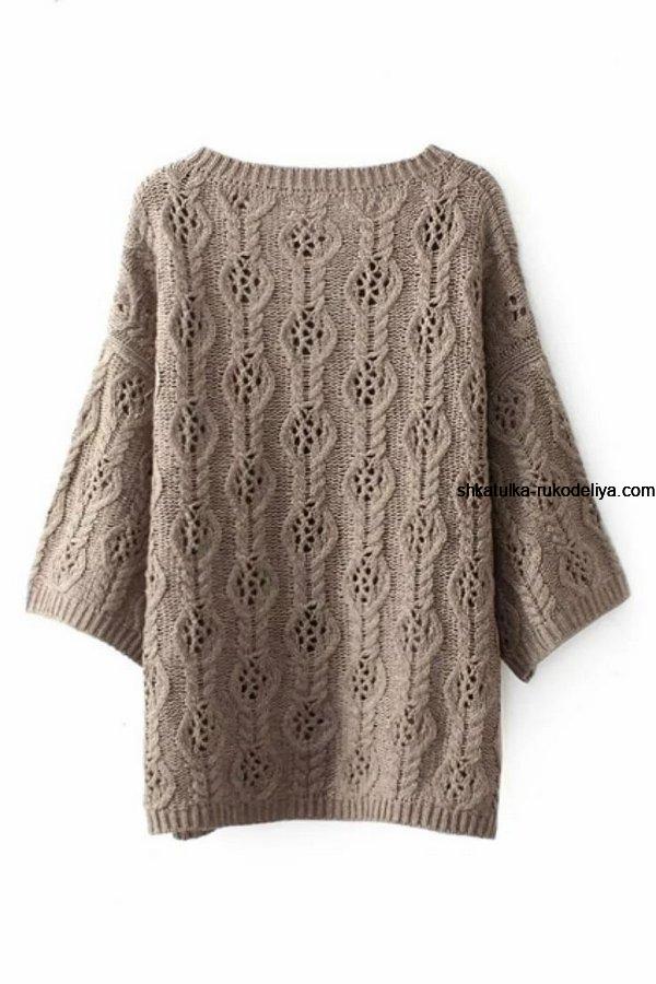 Пуловер спицами ажурным узором. Свободный пуловер оверсайз+схемы