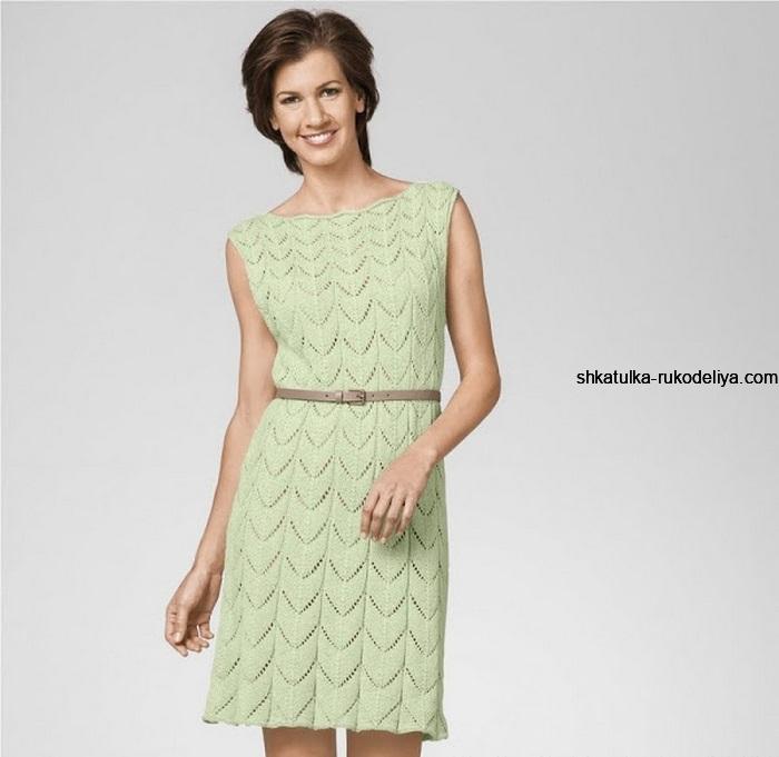 вязание спицами, платье, схемы, описание, салатовое, лето, женское, ажурное