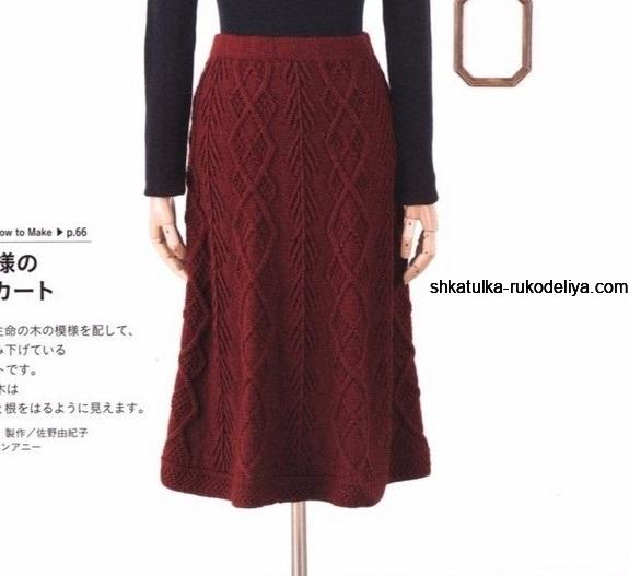 Теплая женская юбка спицами. Женская юбка с вертикальными аранами