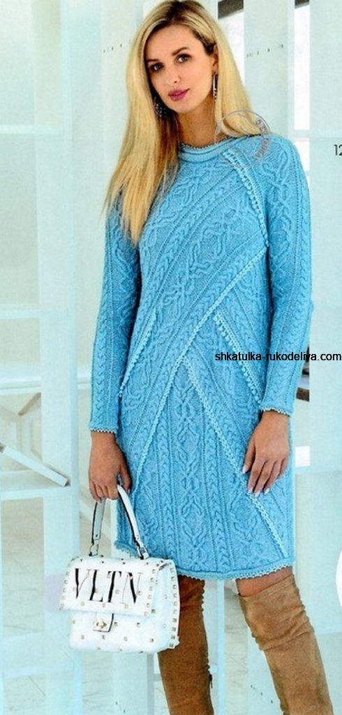 Теплое твидовое платье свободного силуэта. Женские платья спицами схемы описание