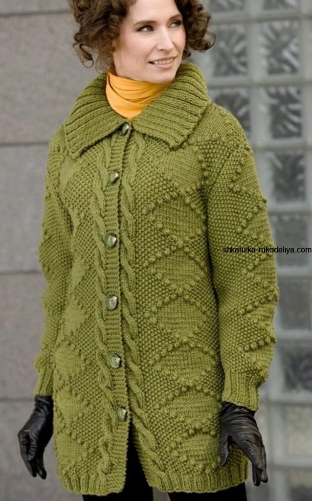 Теплый жакет с узором из ромбов. Длинный жакет схема спицами
