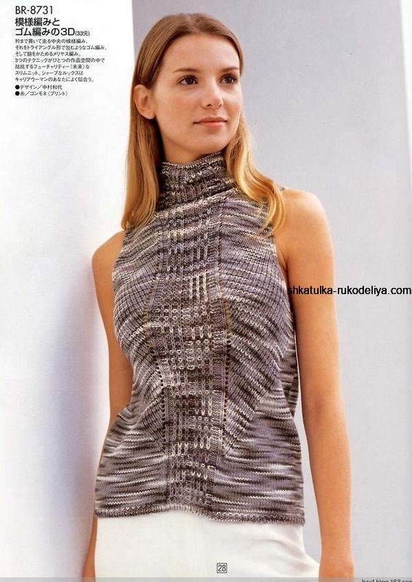 вязание спицами, топ, описание, меланжевая пряжа, схема, летний, открытые плечи, женский