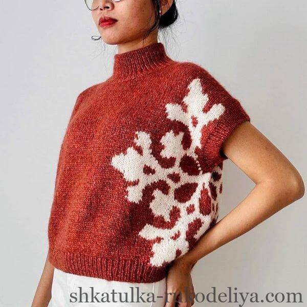 Топ із жакардовим візерунком “сніжинка”17.12.202515.12.2025Блузи, топиВ'язання спицями Топ із жакардовим візерунком сніжинка Просмотры: 95Share this:Click to share on Facebook (Opens in new window)Click to share on LinkedIn (Opens in new window)Click to share on Twitter (Opens in new window)Click to share on Pinterest (Opens in new window)Click to share on Telegram (Opens in new window)вязання спицями, для жінок, схема, топ Previous Post