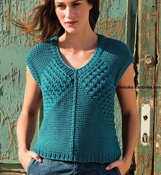 Топ с асимметричными вставками спицами. Летний женский топ с узором звездочка спицами