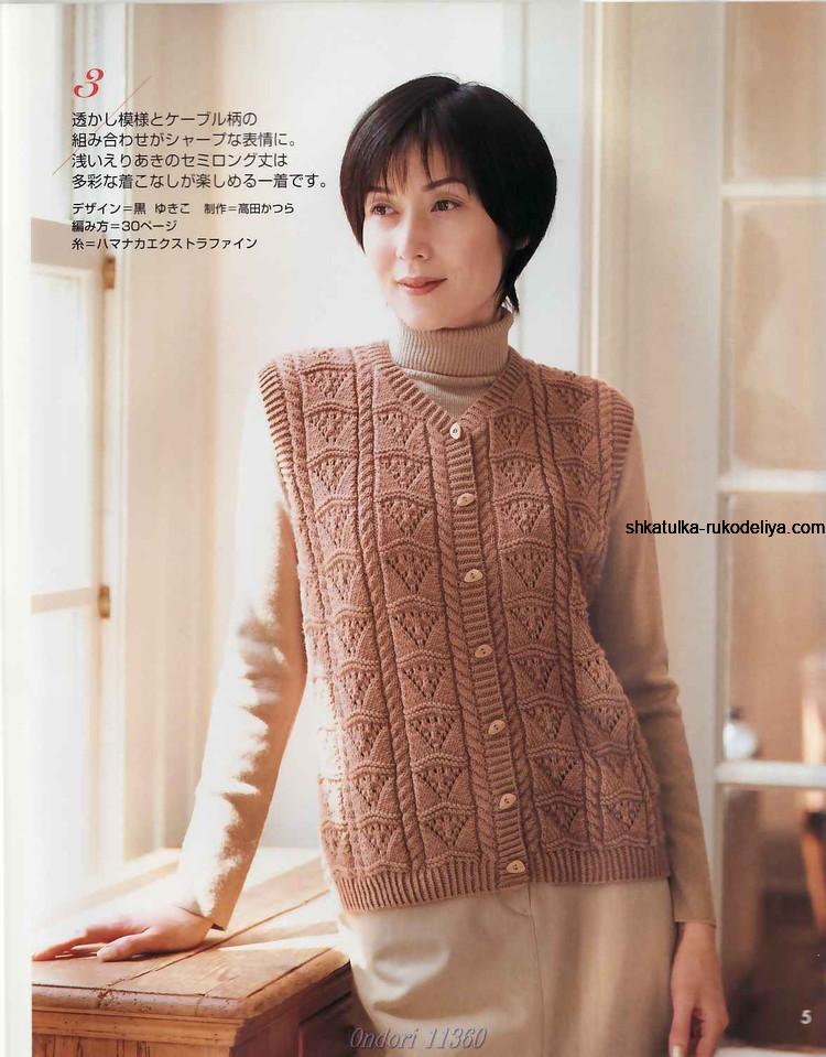 вязание спицами, жилет, схема, узорчатый, простой, женский, стильный, по японских схемах
