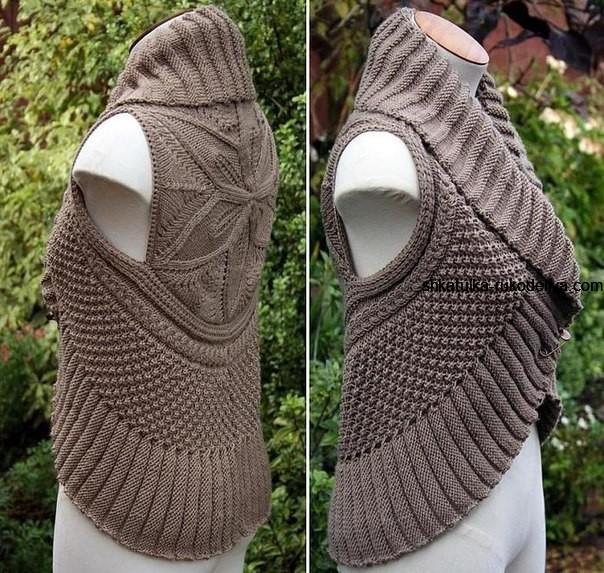 вязание спицами, жилет, круглый, описание, женский, мотив, для стильных