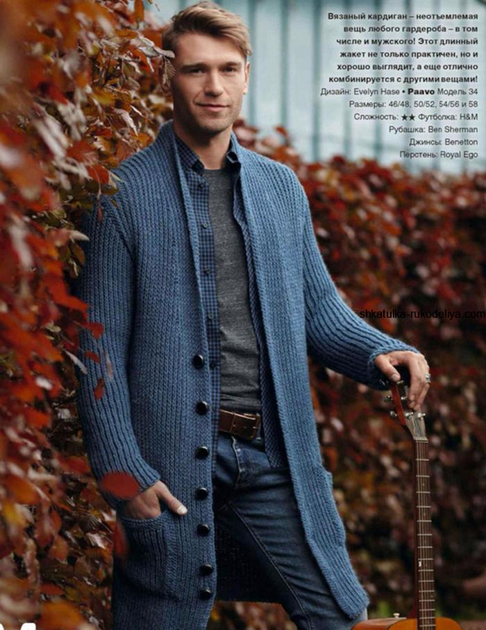 вязание спицами, кардиган, описание, мужской, сильный, модный, длинный, полупатентный узор