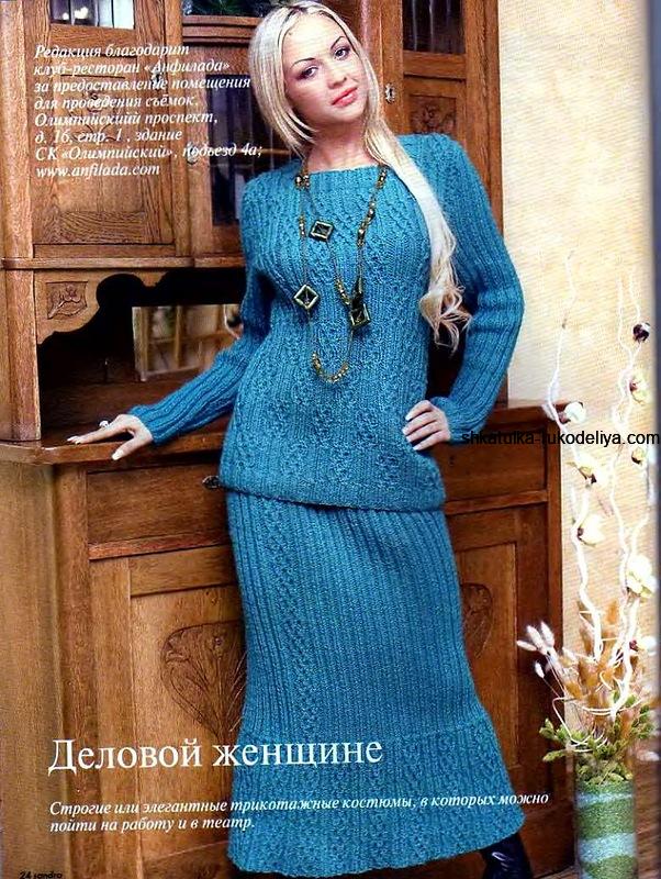вязание спицами, костюм, схема, описание, кофта, юбка, деловой, теплый, женский