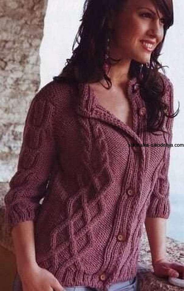 Жакет с рельефным узором . Вязаный жакет с пуговицами с описанием