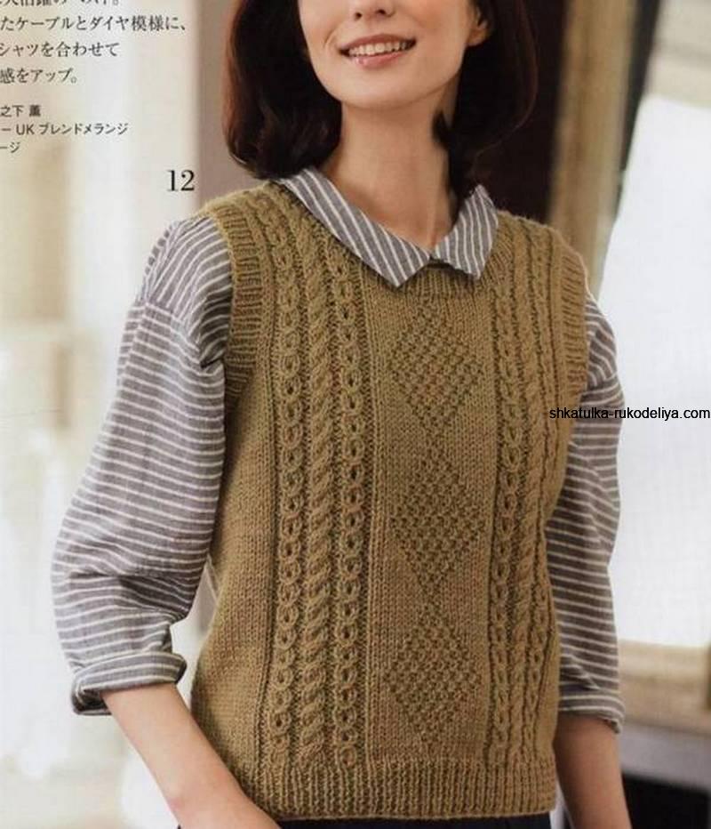 Узор для безрукавки спицами для женщин. Безрукавки женские вязаные спицами.