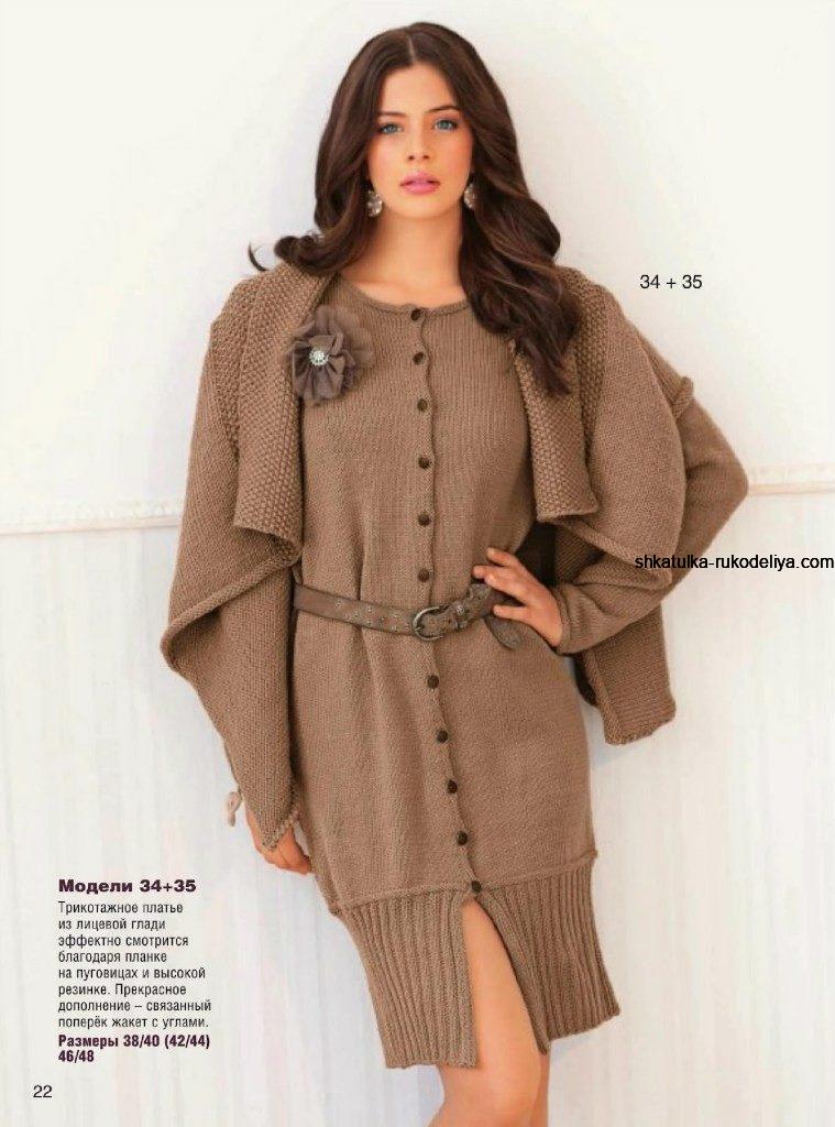Женский комплект-платье и жакет спицами. Платье и жакет с заострениями спицами описание