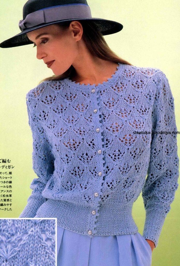 Женский жакет на широкой резинки спицами. Жакет спицами от японских дизайнеров