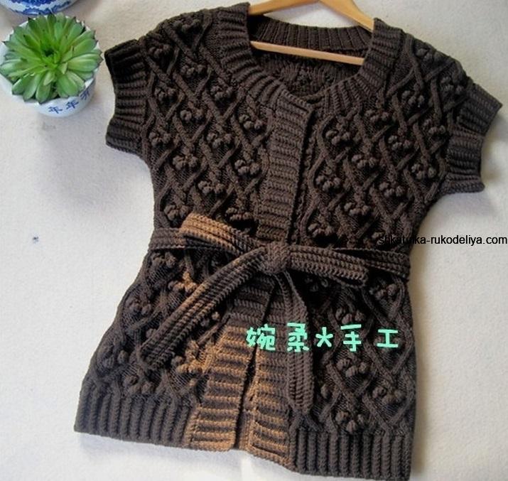 вязание спицами, жилет, схема, с пояском, просто, быстро, женский, теплый